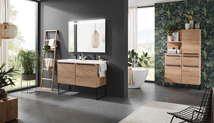 Damit dieser Ort auch für Sie zu einem ganz eigenen wird, bieten wir Ihnen hochwertig verarbeitete Badmöbel, deren Gestaltung von der Natur oder von aktuellen Trends des Interior Designs inspiriert sind. Sei es warme Holz-Optik, hochwertiger Schiefer, moderner Beton oder hochglänzende und matte