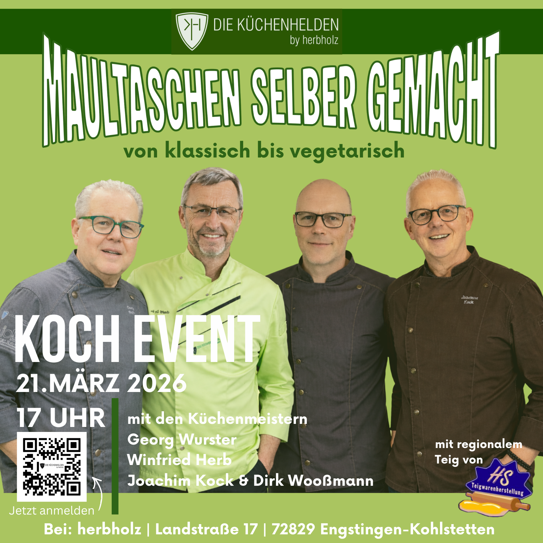 Freu dich auf einen genussvollen, geselligen Abend in entspannter Atmosphäre, gutem Essen und jeder Menge Inspiration. Kochen, lachen, probieren — und am Ende stolz deine eigenen Maultaschen genießen.
